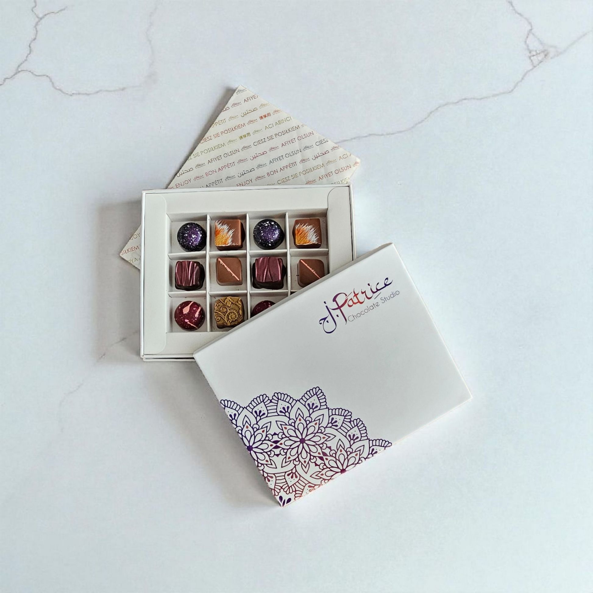 A box of 12 bonbons, handpicked by our chocolatiers. It’s a perfect choice if you want to delight your friends and family – or even yourself.