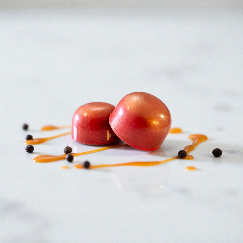 Smooth, flowing fresh cream caramel infused with a hint of Pink Himalayan Sea Salt and a special 5-star black pepper blend, encased in a sumptuous milk chocolate shell. A delicate balance of sweet caramel with a subtle savory undertone.